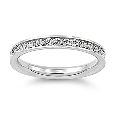 Product Details: Absolutely brilliant shine stainless steel eternity cz wedding band ring. This ring is very durable and solid. It will last you a very long time. You can wear this ring whenever and wherever. Wear it with fashion, wear it with upscale dress codes. This ring fits all the right occasions. Save hundreds of dollars from retailers from the mall. Wear this shiny stainless steel, simple but very classy and elegant. Great value for couples on a budget.