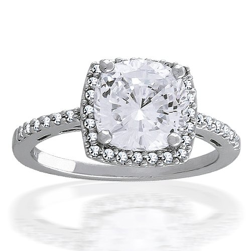 Product Details: A classic ring for a classic woman. Our sterling silver engagement rings bring both glamour and sparkle with their dazzling stones. This sterling silver ring consists of a shining silver band that only shines more with its cz stones. The center of this cz diamond ring is an 8mm round brilliant cut colorless cz stone. This stone is flanked by beautiful 1.6mm round cut cz stones that surround the stone before they descend down the band of the ring. This cz diamond engagement ring is perfect for anyone who loves the old school glamour of days gone by, not the mention the glamorous jewelry everyone had. Order this stunning piece of cz diamond jewelry today and let any recipient emulate retro glam.