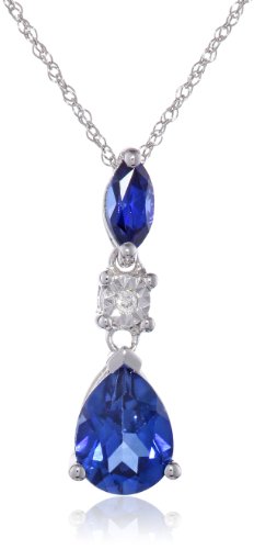 Buy now DiAura 10k White Gold Created Ceylon Sapphire and Diamond Accent Pendant Necklace, 18" is on sale. Great discounts are waiting for you