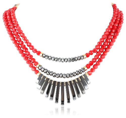 Buy now K. Amato "Bold Statement" Red Triple Bead Fan Strand Necklace, 10" is on sale. Great discounts are waiting for you