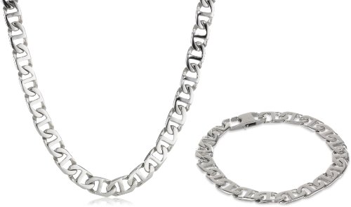 - The stainless steel construction of this men's necklace and bracelet set offers lasting shine while the mariner style of the chains lends itself to a masculine, streamlined look.