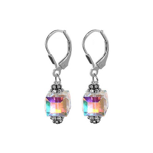 Product Details: Sterling Silver Lever back Faceted Cube Crystal Dangle Earrings Made with Swarovski Elements. Beautifully handcrafted with 9mm Argent Comet and complementary delicately beaded sterling silver Bali findings. Secured with sterling silver lever back earring findings for a polished and elegant look to just about any outfit. Simple elegance at its finest. Earrings will be shipped in a FREE gift box making it easy for you to surprise your special someone. Thank you for shopping at Gem Avenue!