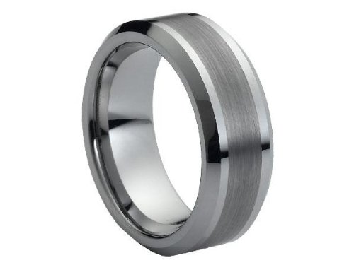 Buy Tungsten Carbide 8 mm (5/16 in) Comfort Fit Flat Wedding Band Ring w/ Brushed Center & Beveled Edge (Available in Sizes 8 to 11) with the cheapest price ever to save money.